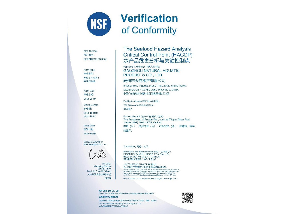 Gaozhou Nature Aquatic Products Co., Ltd. is an export-oriented enterprise that integrating aquaculture, processing, cold storage, and export trade. The enterprise was founded in 2010 with a total investment of over 60 million yuan. It covers an area of more than 27,000 square meters, including production workshops, office buildings, dormitories, etc., with a construction area of 11,200 square meters. It owns five Tilapi···